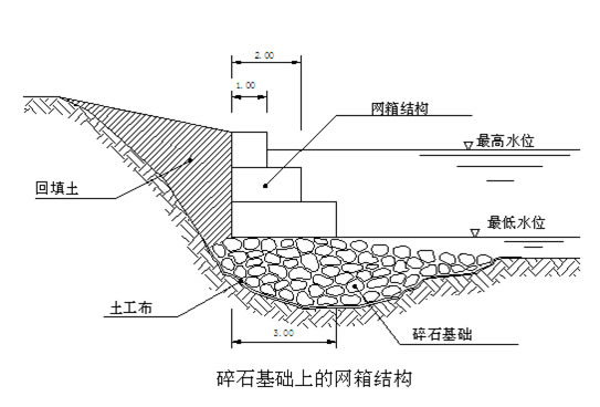 在水位比較高或者是抗洪搶險(xiǎn)期,不適合造圍堰施工的情況下,可將擋墻下部的網(wǎng)墊改為網(wǎng)袋或大塊石,以營(yíng)造比較有利的施工環(huán)境。