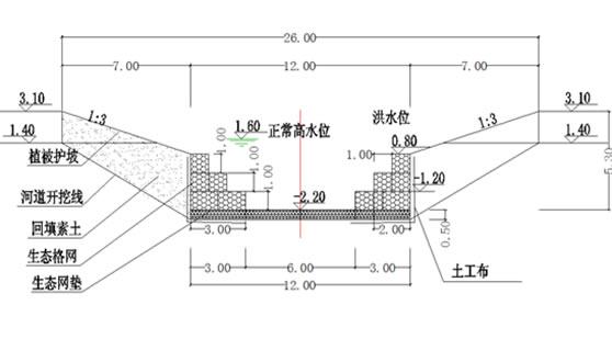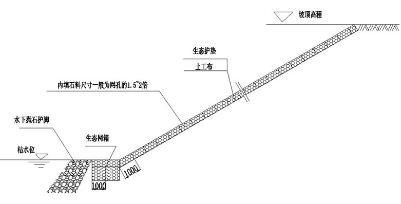 現(xiàn)在河道整治護(hù)坡目前大多采用塊石或預(yù)制混凝土塊結(jié)構(gòu)型式,重點(diǎn)解決河道受河水沖刷的邊坡穩(wěn)定問(wèn)題,而忽視了河道生態(tài)功能;石籠網(wǎng)護(hù)坡是一種既能確保邊坡穩(wěn)定,又能維護(hù)和恢復(fù)河道生態(tài)的結(jié)構(gòu)型式。