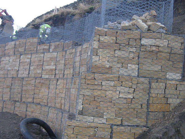 石籠網(wǎng)是使填石固定就位的鐵絲或聚合物絲網(wǎng)格式制作物。鐵絲籠是由鐵絲編織的網(wǎng)格或焊接而成的結(jié)構(gòu)物。這兩種結(jié)構(gòu)可以是電鍍的,編織的鐵絲箱可另外涂上PVC。用抗風(fēng)化堅(jiān)硬石塊作填料,它在石箱或石籠沉排中不會(huì)因磨蝕而很快破碎。裝有不同類型的塊石的石籠有不同的特性。多角的塊石能相互很好地聯(lián)鎖在一起,用其填裝的石籠不易變形。
